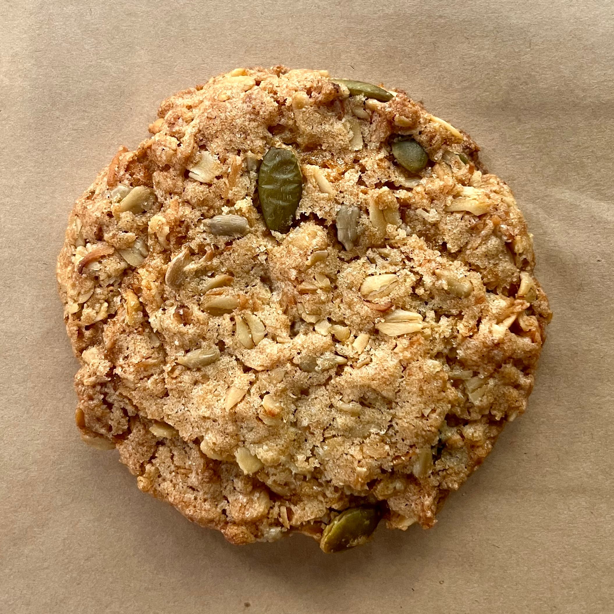 【原材料名】オートミール(アメリカ製造)、小麦粉、三温糖、砂糖、菜種油、ココナッツ、ひまわりの種、かぼちゃの種、天日塩/膨張剤、香料