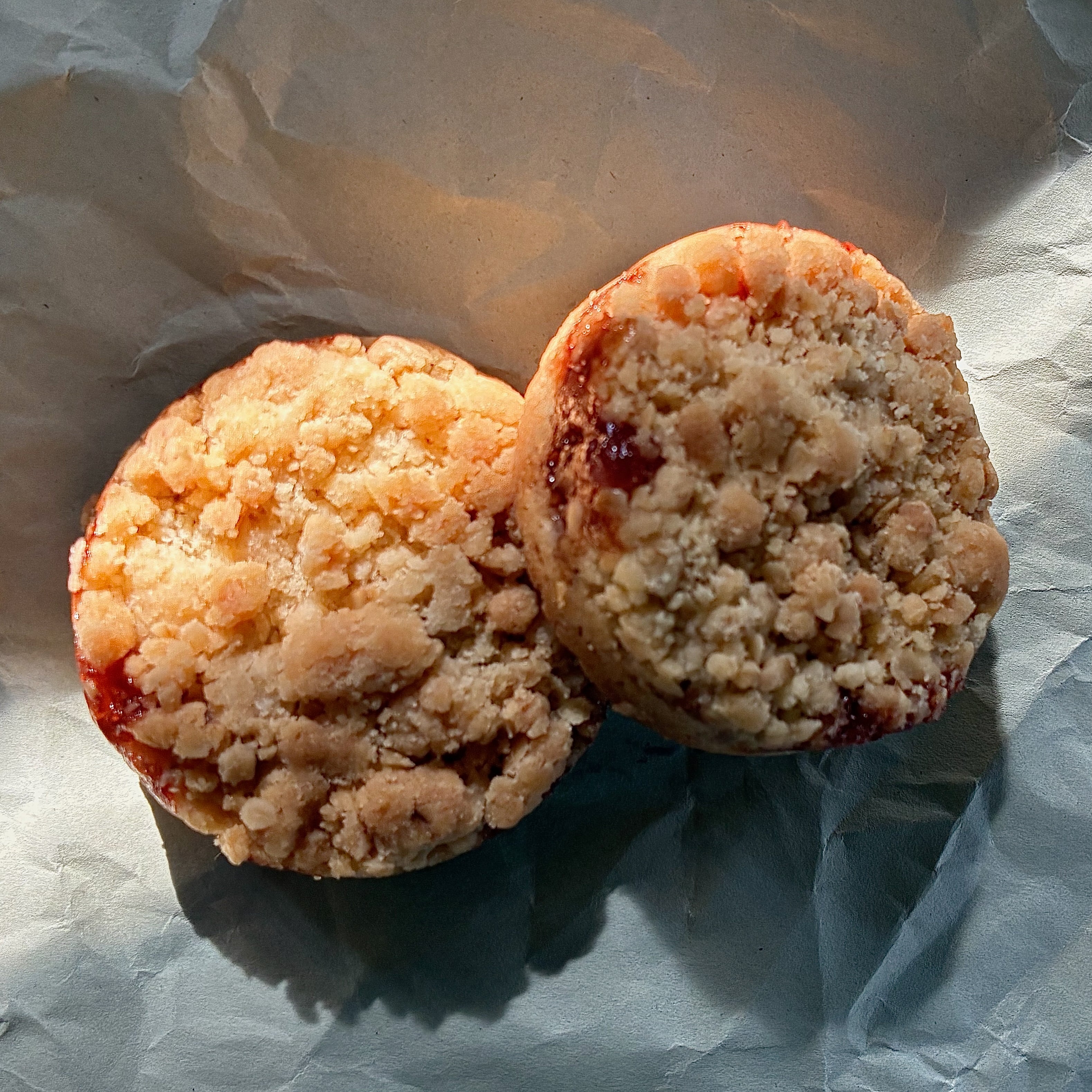 【原材料名】小麦粉(国内製造)、三温糖、ココナッツオイル、菜種油、オーツ麦、いちごジャム(いちご、濃縮果汁(ぶどう、デーツ、レモン果汁))、天日塩/膨張剤、香料、ゲル化剤(ペクチン)